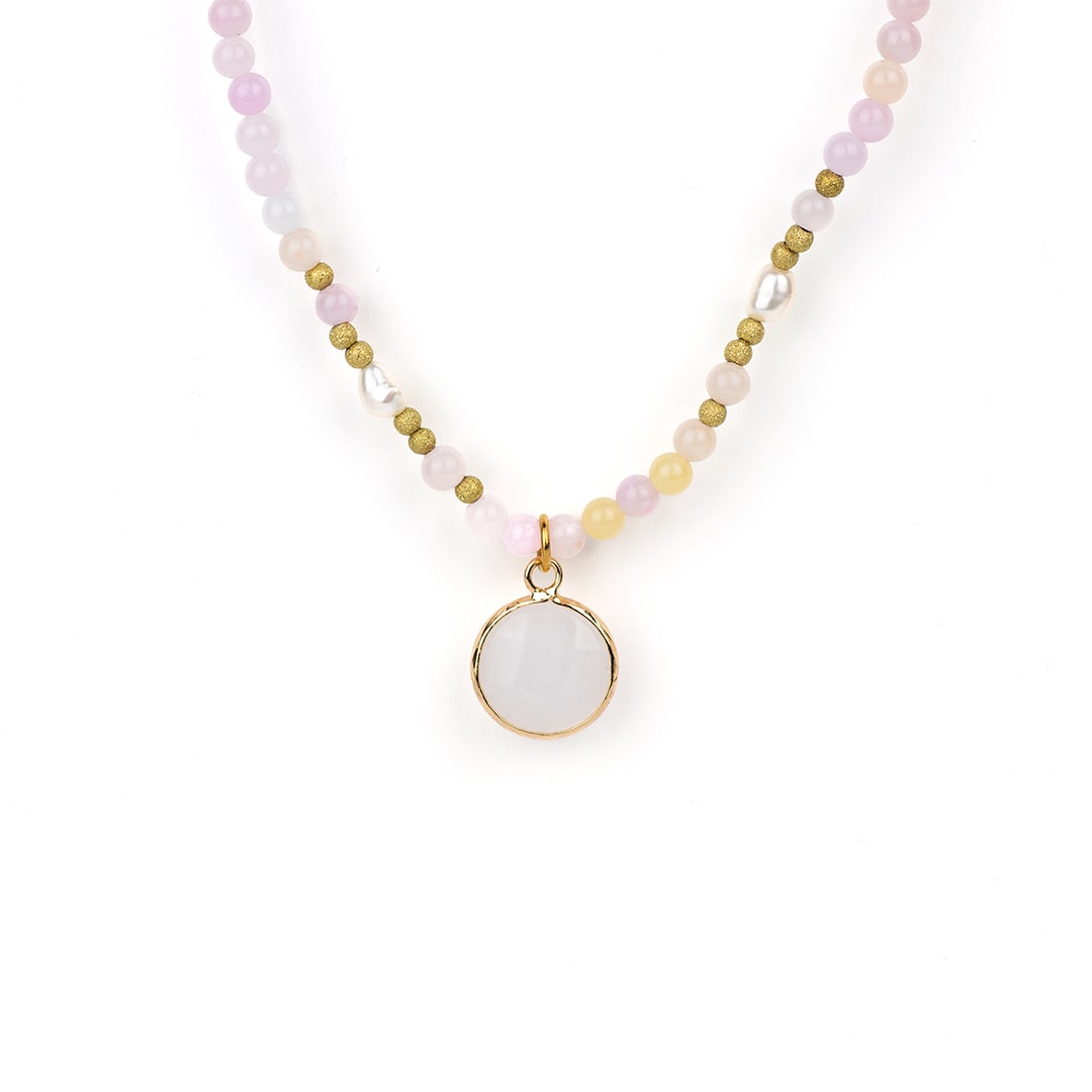 Material: Edelsteine Jade (weiß und lemon). mother of pearl (creme) Aquamarin (blau), Sunstones (rosa), Tourmaline (bunt) Morganite (pastel), Feldspat (bronze)
