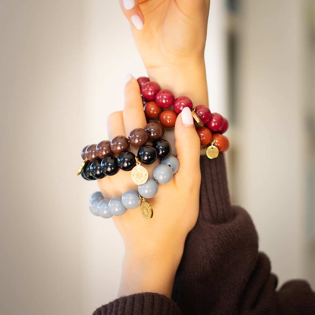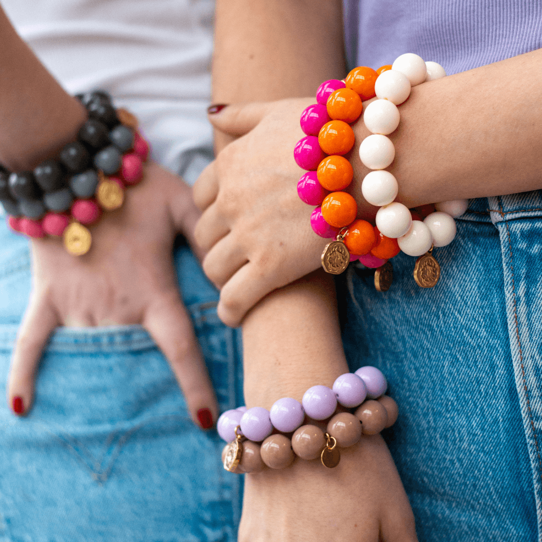 Die opulenten und federleichten Beads schmiegen sich angenehm um dein Handgelenk. Unser Edelstahlanhänger sorgt für den perfekten LOOK.