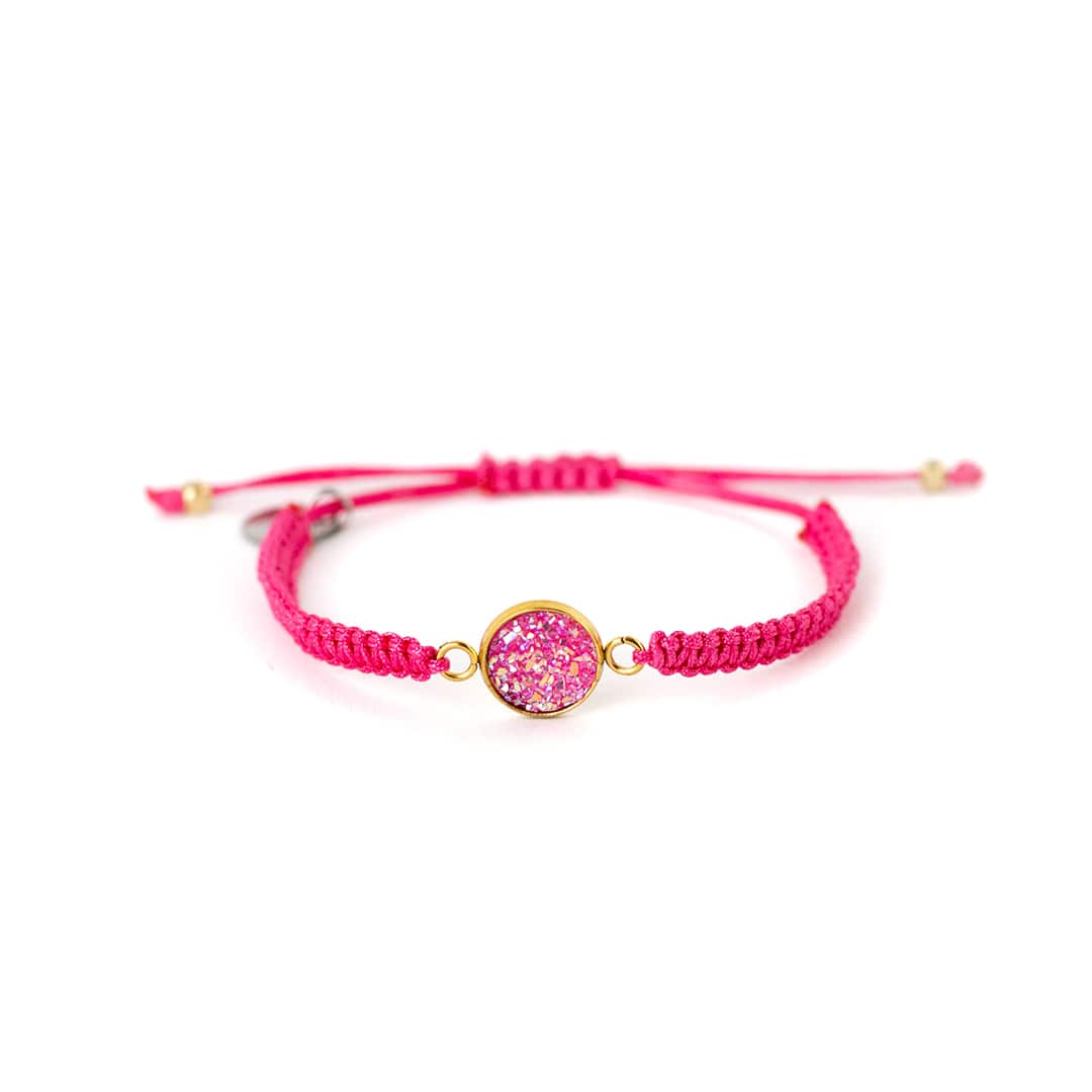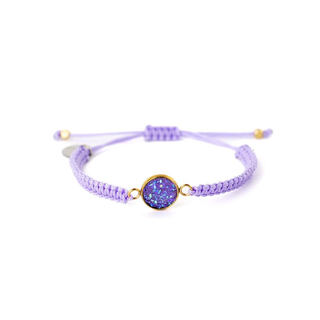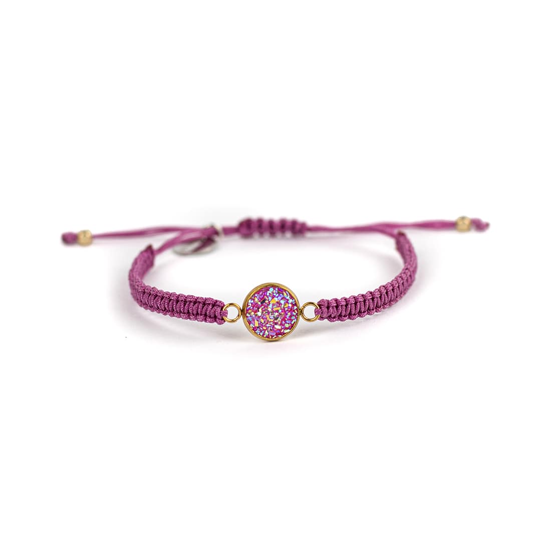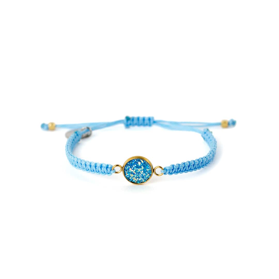 Unser makrameedesigntes Armband ‚Drusy‘ brilliert mit seinem farbenfrohen Design und bringt gute Laune in deinen Alltag. ‚Drusy‘ eignet sich optimal als Freundschaftsarmband. Mache dir und einer guten Freundin ein liebevolles Geschenk.