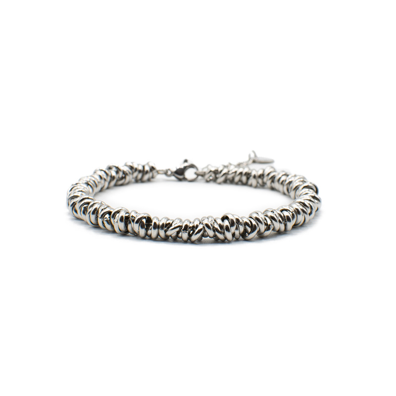 Ring um Ring reiht sich in silber, gold oder silber/gold aneinander und bildet so unser Armband ‚Laura‘ aus Edelstahl. Ein Karabinerverschluss ermöglicht dir eine individuelle Tragelänge. Dieser sportlich lässige Armschmuck passt perfekt zum Alltagslook aus Jeans und T-Shirt, aber ist auch bei eleganten Anlässen ein Hingucker.