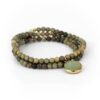 Olivfarbene Edelsteine mit feiner Facettierung reihen sich an unserer Kette ‚Shyl‘ mit zarten goldfarbenen Kügelchen aneinander – ein wirklich edles Ensemble, das durch einen in gold gefassten Amazonit ergänzt wird. Mit diesem Accessoire setzt du ein Statement, das jeden Look veredelt.