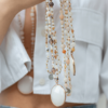 Verschieden große Edelsteine mit feiner Facettierung reihen sich an unserer Kette ‚Yara‘ mit zarten goldfarbenen Nugetts aneinander – ein wirklich edles Ensemble, das durch einen Anhänger aus weißer Jade perfekt wird. Mit diesem Accessoire setzt du ein Statement, das jeden Look veredelt.